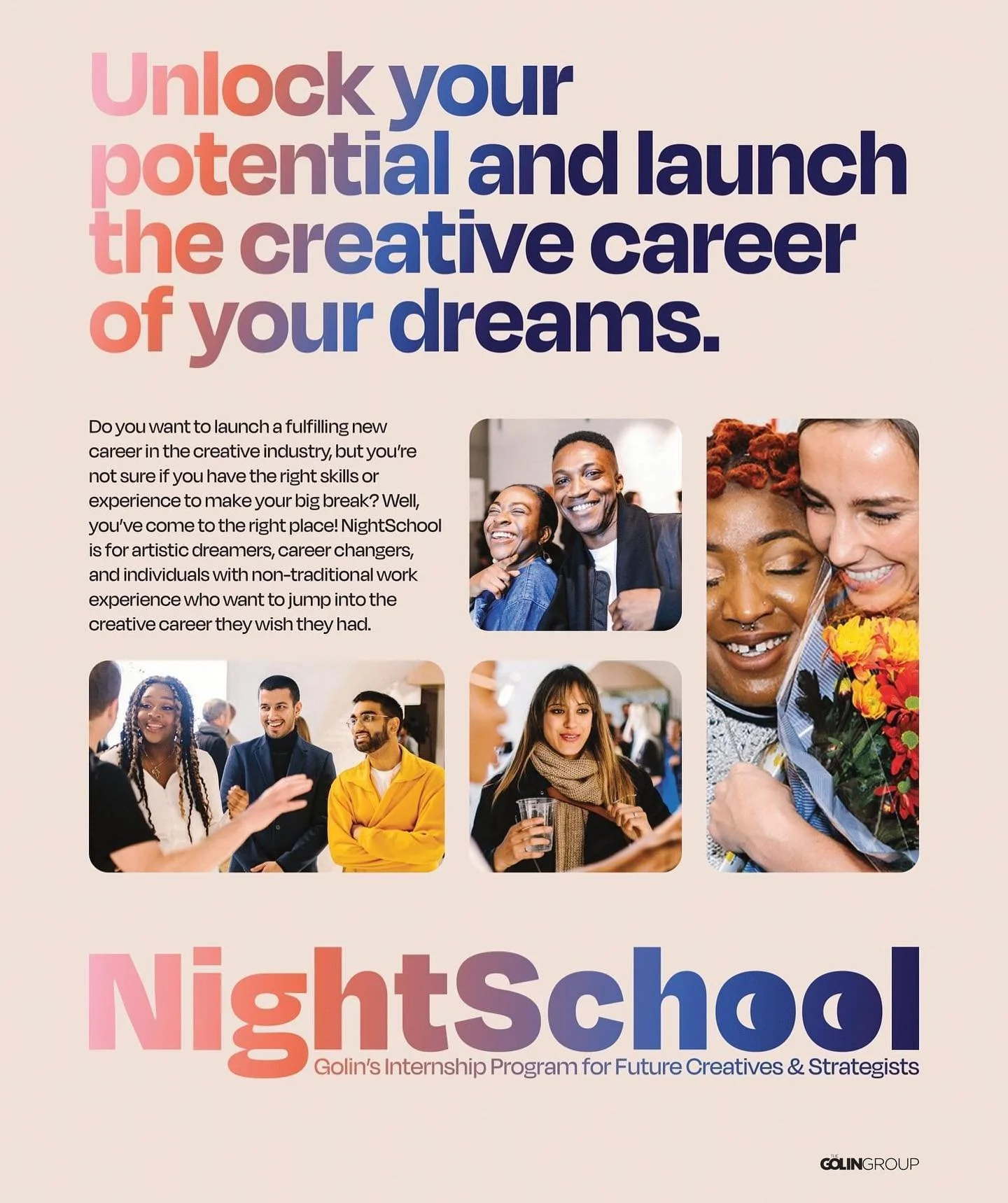 In 2022, Golin US launched Night School, an “8-week career development and coaching program for working adults from marginalized communities interested in pivoting to creative-based industries.” In 2023, they graciously invited me as a copywriting mentor.